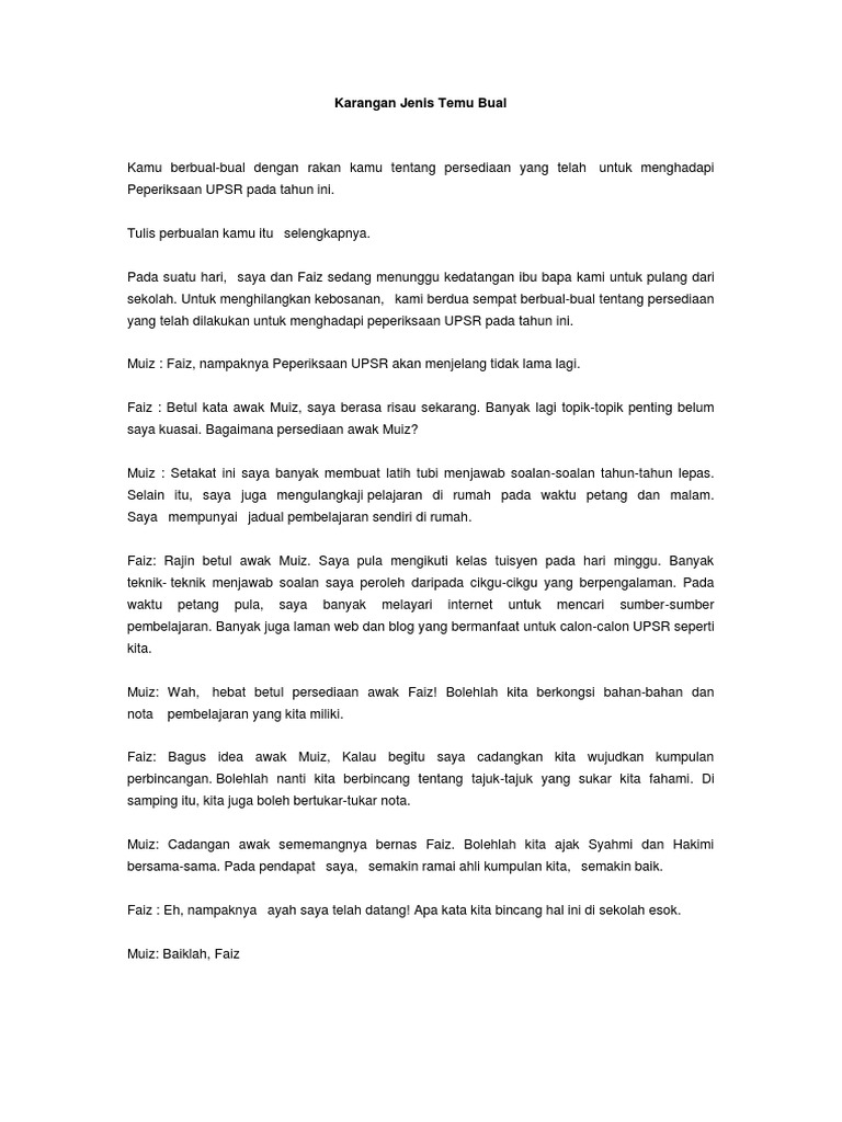 Contoh Karangan Upsr Bahasa Melayu Senarai Tahun 6